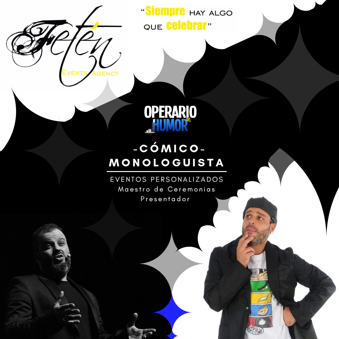 Hoy os presentamos a nuestro "Operario del Humor": Un cómico especializado en el monólogo y también en otras facetas como la de animador, speaker, presentador de eventos, juez de paz – cura falso, actor… en realidad un todoterreno, un verdadero currante de la risa.